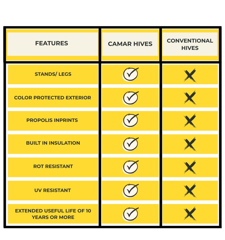 Conventional hive boxes offer a box. Camar hives offer so much more.
